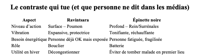 Ravintsara vs Épinette noire : la (vraie) comparaison énergétique